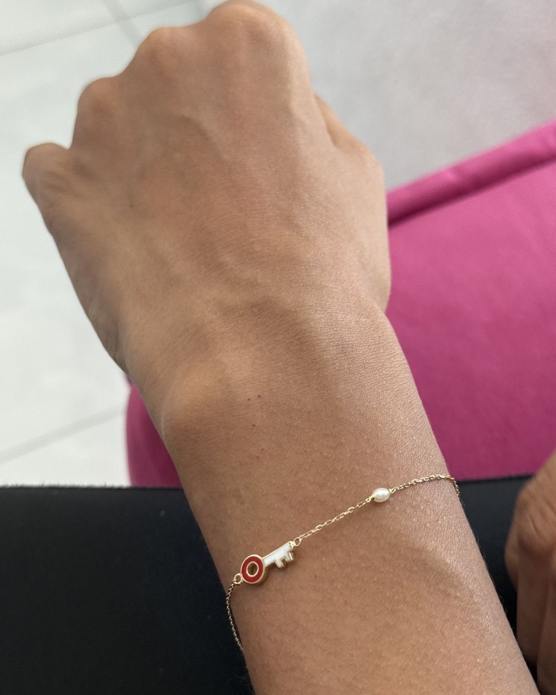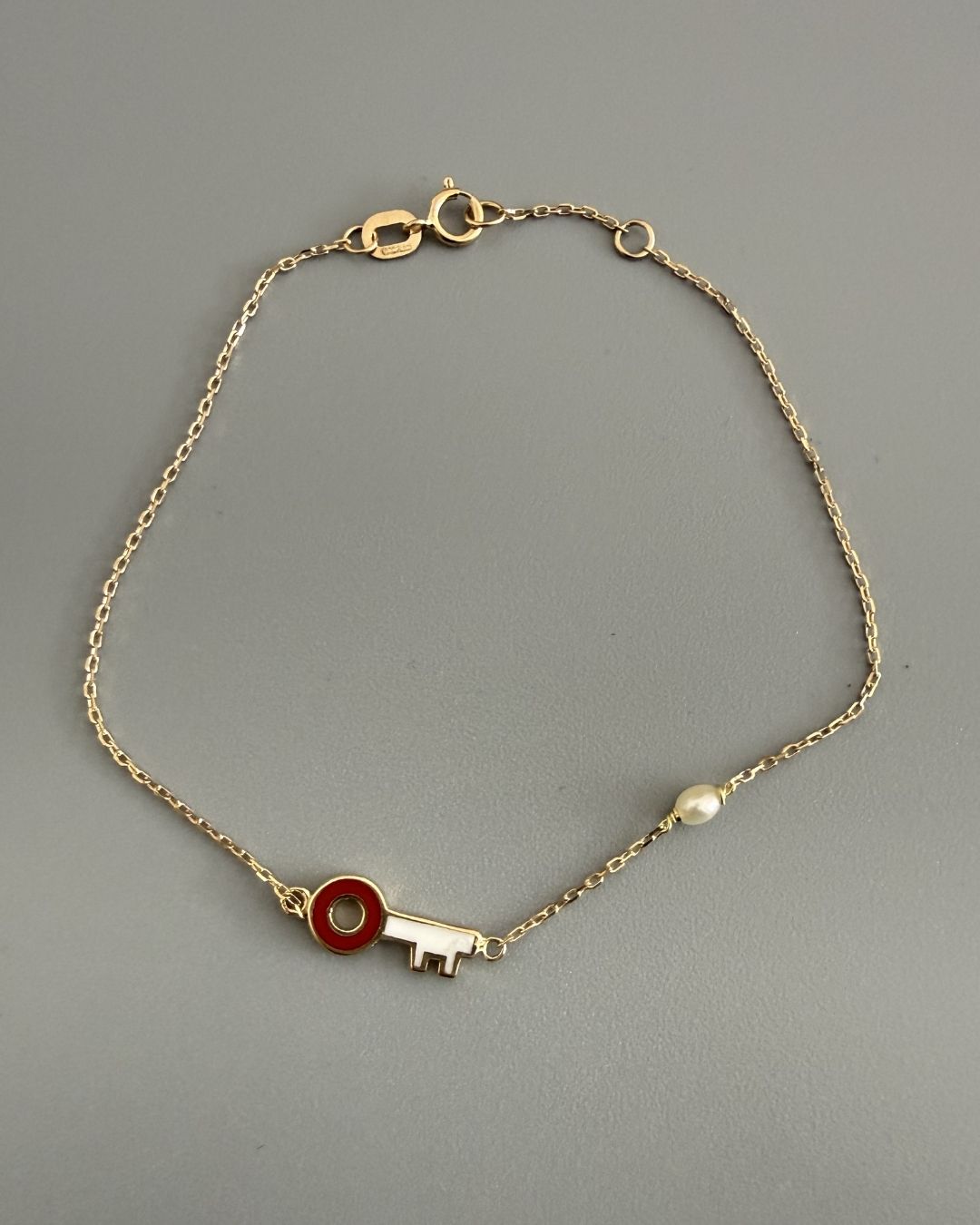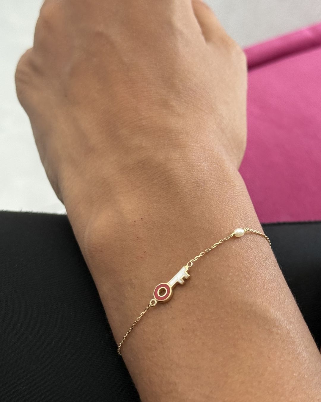 This Bahrain key bracelet is designed to shine every day and add a meaningful touch to your look, Crafted in 18K solid gold combining with Bahrain Natural pearl.
