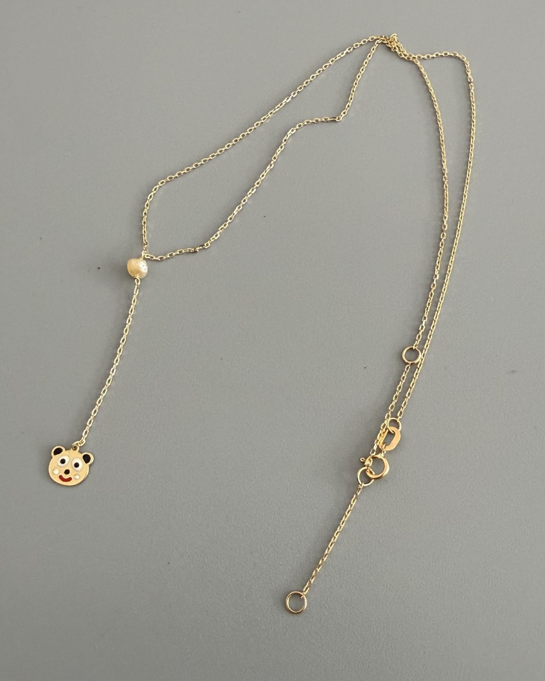 A Necklace made of pure 18 karat gold combining with Bear Pendant and Bahrain Natural Pearl,