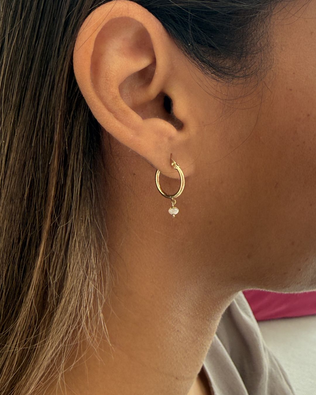 Mini Bahraini Pearl Hoop Earrings